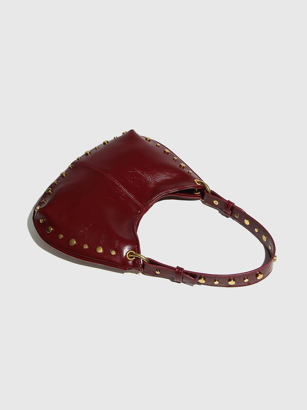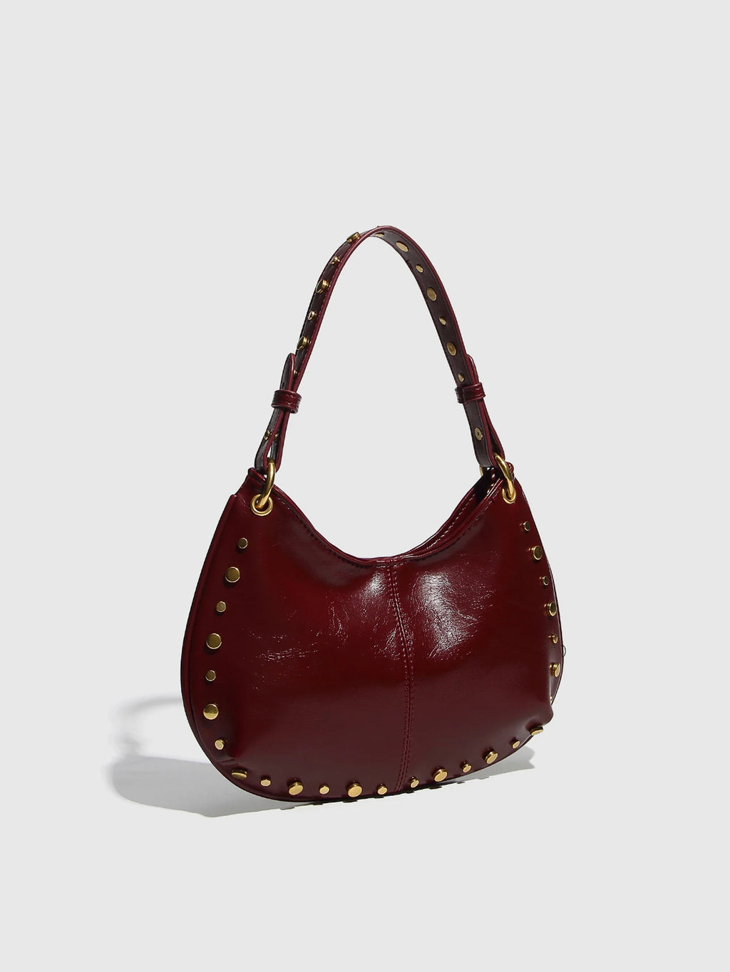 Os detalhes em rebites dourados e a corrente elegante fazem desta bolsa um verdadeiro destaque em qualquer ocasião.