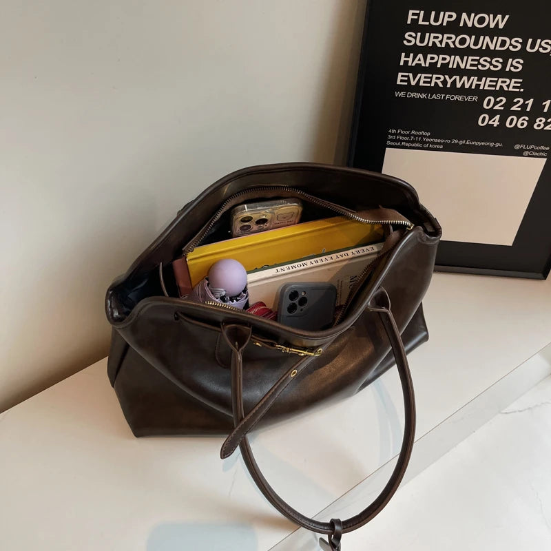 Esta bolsa vintage de couro PU não é apenas um acessório, é uma extensão do seu estilo de vida. Com sua grande capacidade, ela permite que você carregue tudo o que precisa, mantendo a elegância e o charme a cada passo.