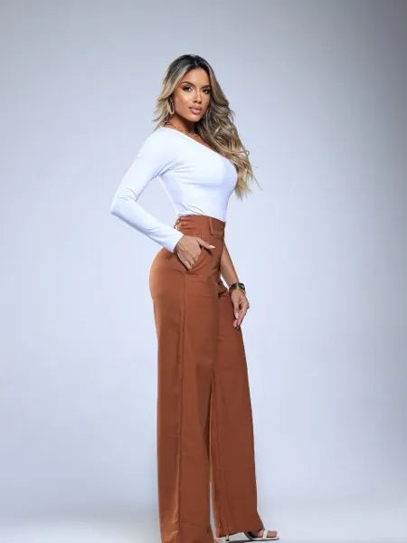 O corte solto e fluido da Calça Pantalona garante liberdade para se movimentar com conforto, seja no trabalho, passeios ou eventos especiais.