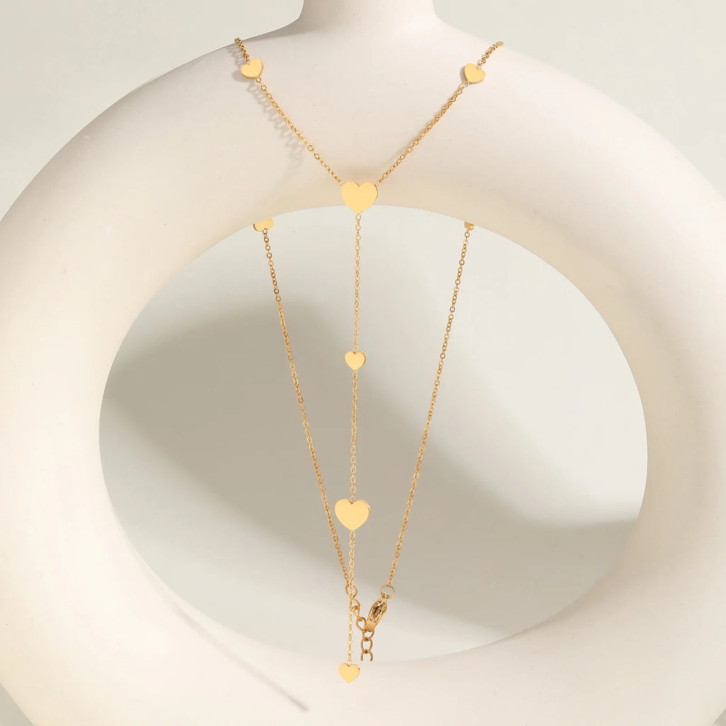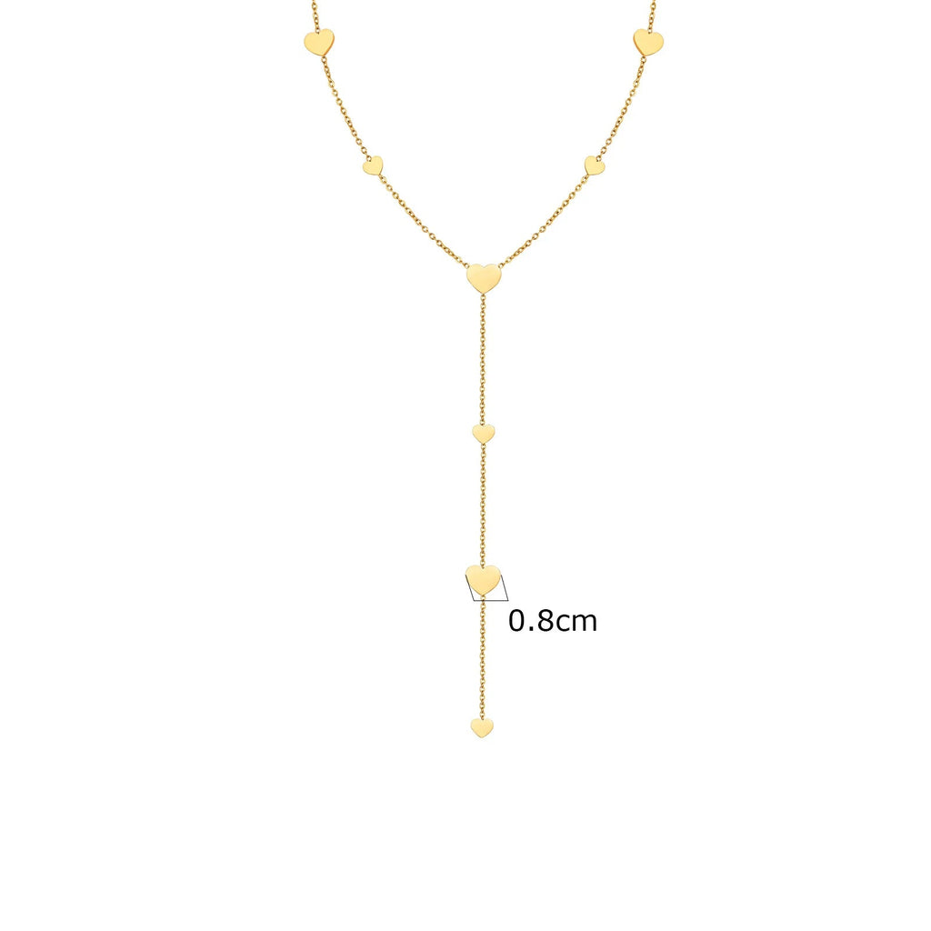 O Colar Coração Dourado em Aço Inoxidável 18K é a escolha perfeita para quem busca um toque de moda em qualquer ocasião. Com seu design em forma de Y e detalhes em corações, ele adiciona um brilho sutil e sofisticado a qualquer look.