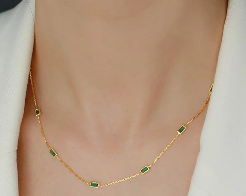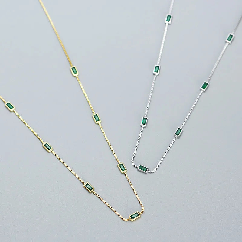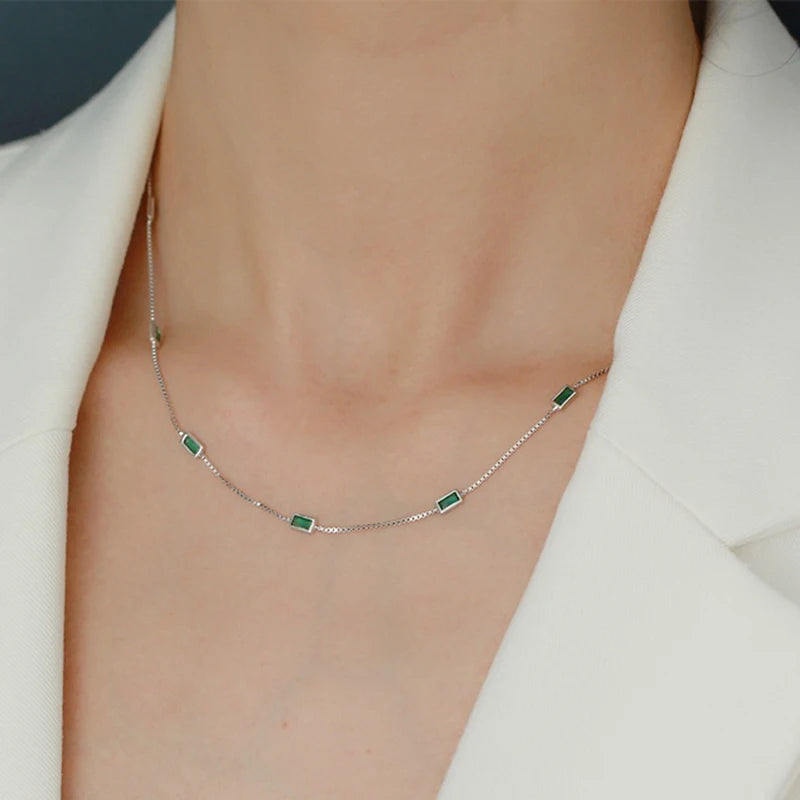 Descubra a moda atemporal do nosso colar de prata esterlina 925, adornado com zircões verdes que capturam a luz de maneira encantadora. Este acessório é perfeito para elevar qualquer look, seja em uma festa glamourosa ou em um jantar romântico.