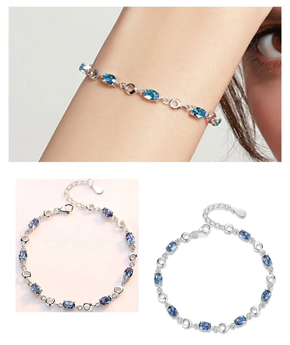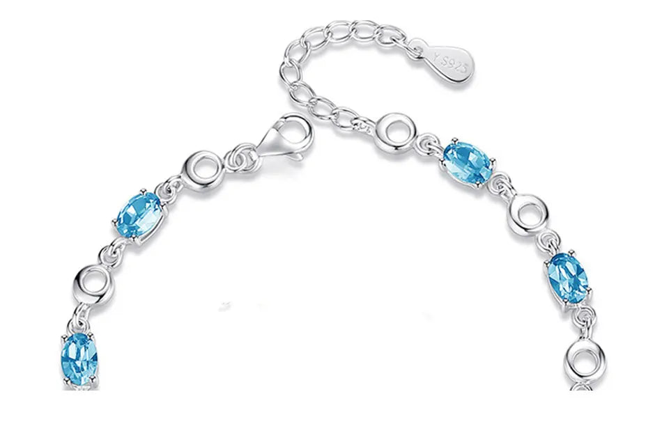 Feita com prata esterlina 925 e adornada com pedras de safira, esta pulseira é a personificação da elegância. Perfeita para graças especiais, ela complementa qualquer look, do casual ao sofisticado, destacando sua beleza única.